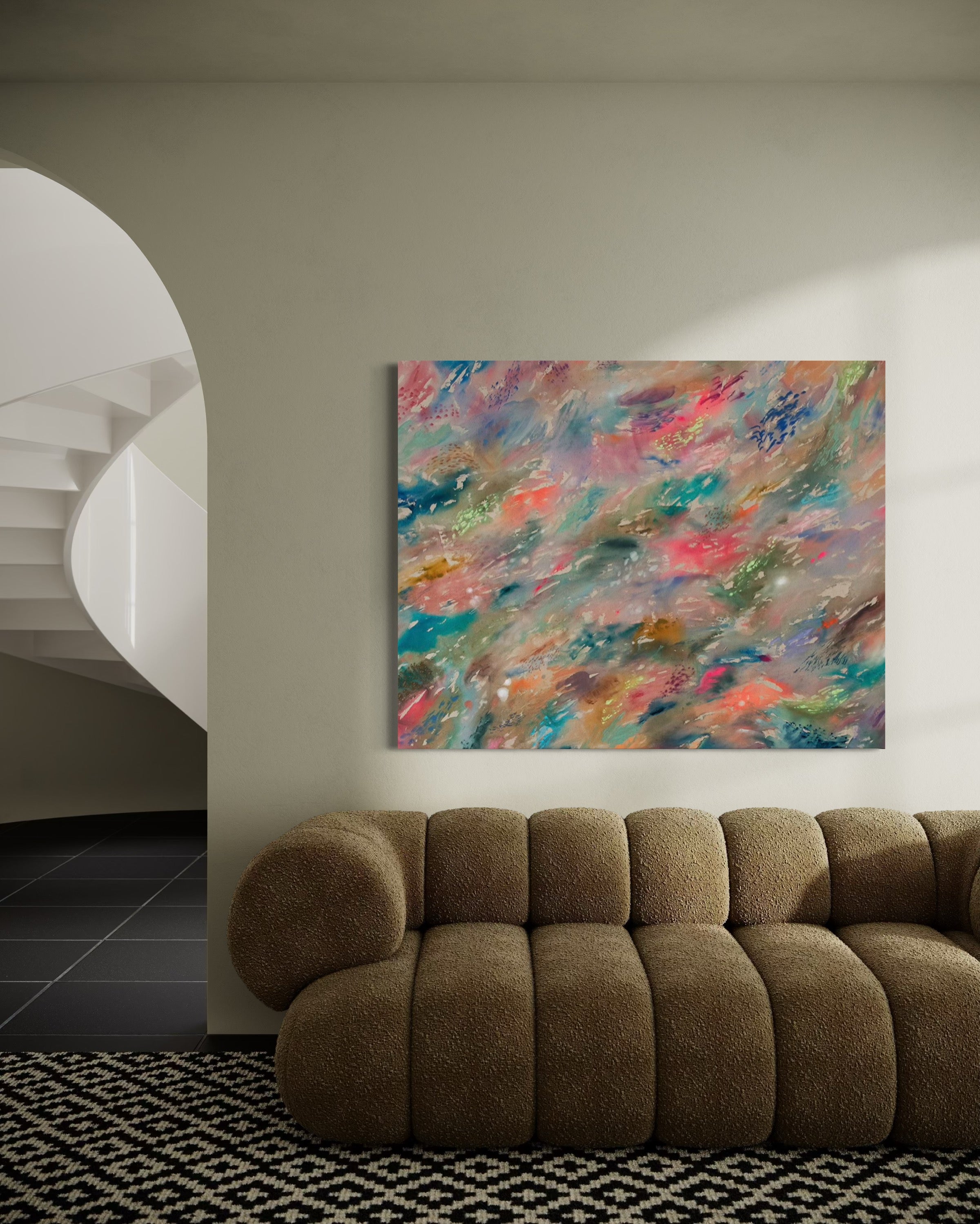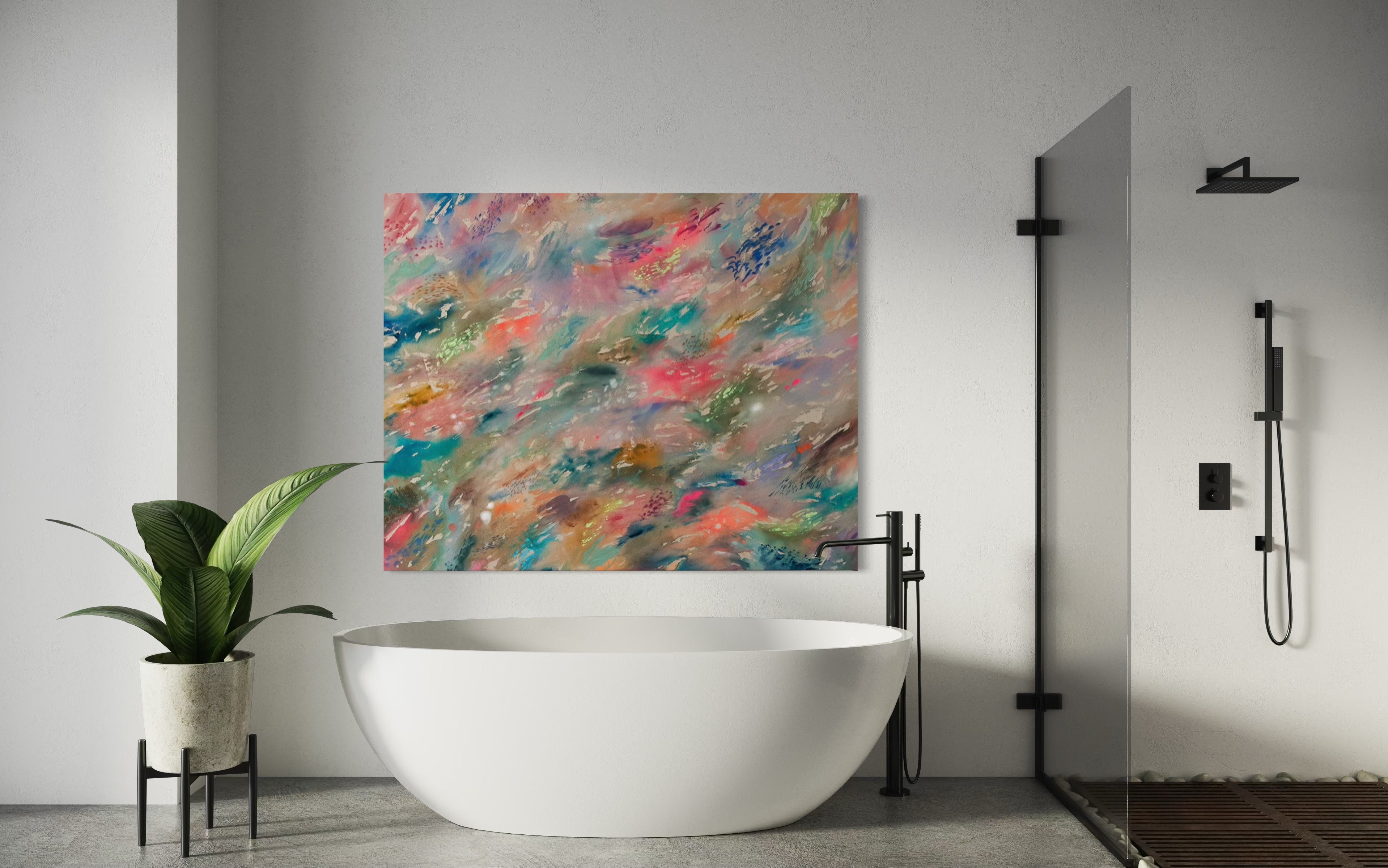 Medium: Original with acrylic, concentrated watercolor, soft pastel on raw canvas